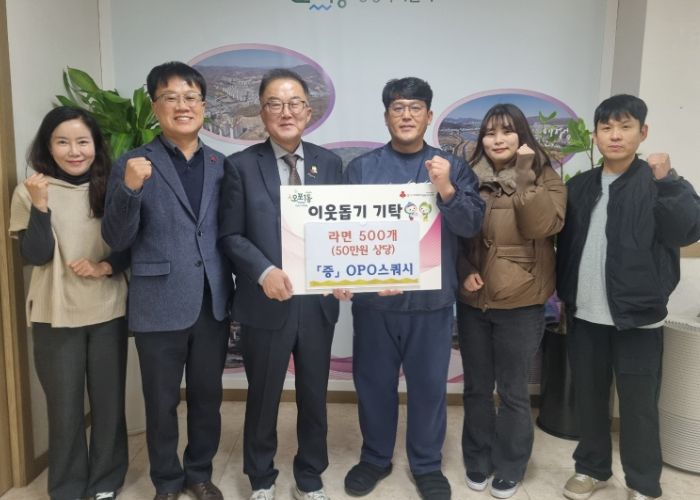 (시사미래신문) OPO스쿼시 강인석 대표는 23일 어려운 이웃에게 전달해 달라며 광주시 오포1동에 라면 500개(50만 원 상당)를 기탁했다.