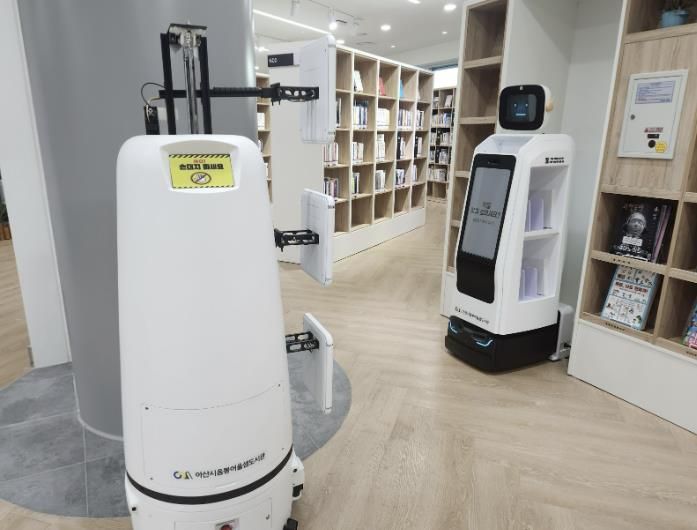 아산시 음봉어울샘도서관은 장서 점검 로봇과 대출·반납 종합 로봇을 실시간으로 연결하는 '이기종 로봇 연계형 스마트 도서관(라이브러리) 시스템'을 신규 도입했다. 서로 다른 기능의 로봇이 정보를 주고받으며 협업하는 시스템을 도서관에 도입한 사례는 이번이 처음이다.