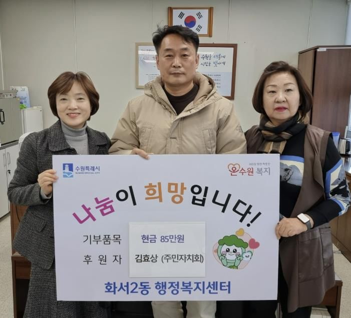 김효상 대표는 화서2동 주민자치회 문화복지분과장으로 활동하며, 평소 지역 주민의 복지 증진과 공동체 활성화를 위한 다양한 사업과 활동에 적극 참여해 왔다. 연말을 맞아 이웃을 위한 나눔을 직접 실천하고자 이번 성금 기부를 결정했으며, 특히 주민자치회 구성원으로서 지역사회에 대한 책임과 연대의 가치를 몸소 실천했다는 점에서 의미가 크다.