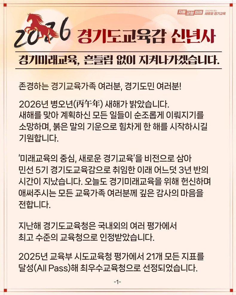 존경하는 경기교육 가족 여러분, 경기도민 여러분!
