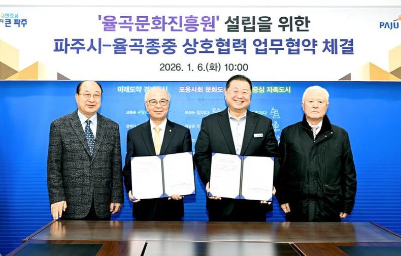 김경일 파주시장은 “이번 협약은 율곡 선생의 정신을 현대적으로 계승하고, 파주시를 대표하는 역사·문화 자산을 체계적으로 발전시키는 중요한 출발점”이라고 강조하며 “율곡문화진흥원이 학술과 교육, 문화가 융합된 거점시설로 자리매김할 수 있도록 율곡 종중과의 협력에 최선을 다하겠다”라고 말했다.