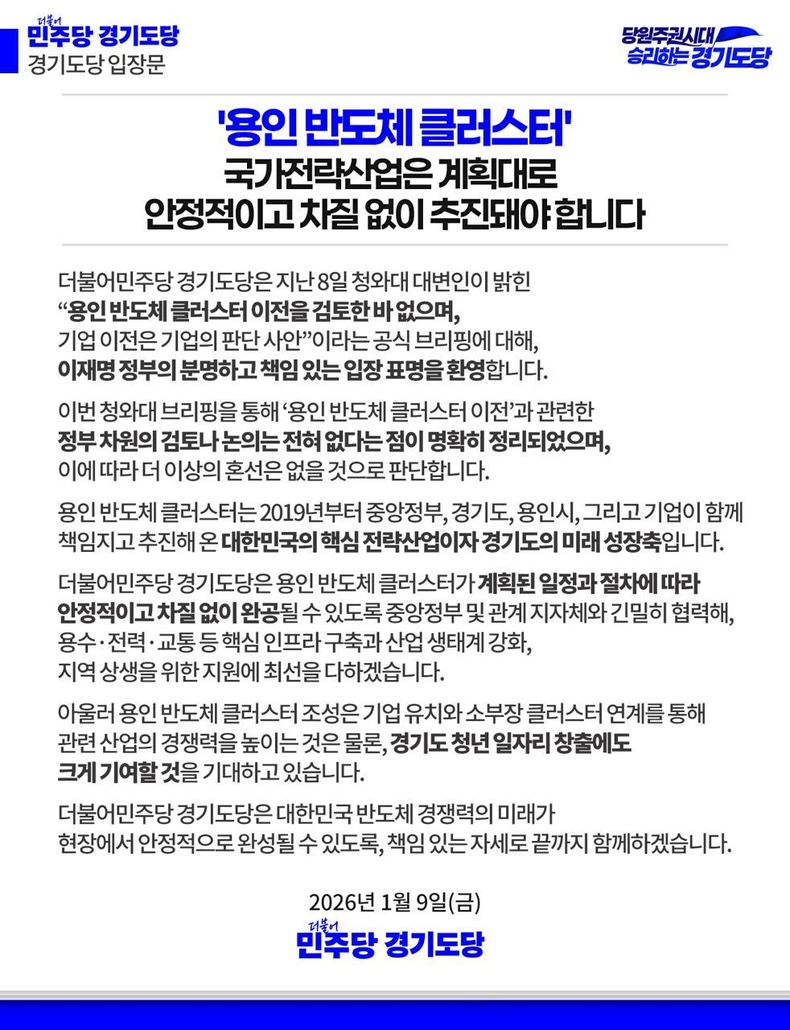 더불어민주당 경기도당은 용인 반도체 클러스터가