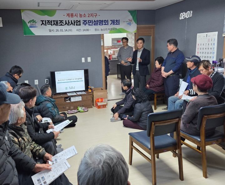 (시사미래신문) 충남 계룡시는 2026년도 지적재조사사업 실시계획에 따른 사업지구 지정을 위해 지난 14일과 16일 농소2지구와 광석2지구 토지소유자 및 이해 관계인들을 대상으로 주민설명회를 개최했다.