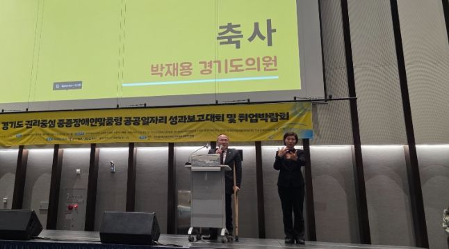 (시사미래신문) 경기도의회 보건복지위원회 박재용 의원(더불어민주당, 비례)은 16일, 수원컨벤션센터에서 열린 ‘2025년 경기도 권리중심 중증장애인맞춤형 공공일자리 성과보고대회 및 취업박람회’에 참석해 축사를 전하고, 중증장애인의 노동권 보장과 권리중심 공공일자리 정책의 지속적인 발전 필요성을 강조했다.