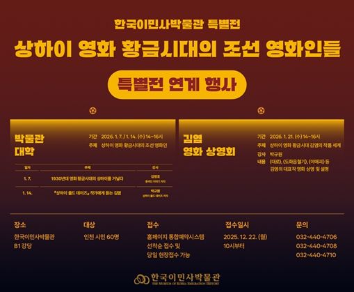 (시사미래신문) 인천광역시 시립박물관 분관 한국이민사박물관은 특별전 〈상하이 영화 황금시대의 조선 영화인들〉과 연계해 중국 영화 황제로 불렸던 배우 김염(金焰)의 대표 영화 작품 상영회를 개최한다.