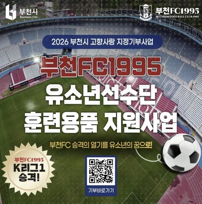 이번 지정기부사업은 10월까지 모금을 진행하며, 대상은 ‘부천FC1995 유소년 선수단 훈련용품 지원’(2천만 원)과 ‘맘(Mom)편한 택시 고향사랑 더하기’(3천만 원) 총 2개 사업이다.