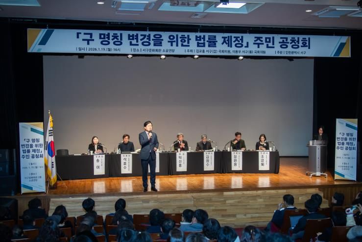 (시사미래신문) 인천 서구는 지난 19일 서구문화회관 소공연장에서 지역주민 약 200여 명이 참석한 가운데 ‘구 명칭 변경을 위한 법률 제정 주민 공청회’를 개최하고 주민 의견을 수렴했다.