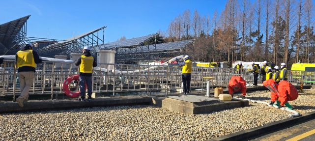 훈련은 정수사업소 내 응집지 인근에서 출처 불명의 액체용기가 발견되고 미상의 액체가 외부로 누출된 상황을 가정해 진행됐다. 해당 물질이 유해화학물질일 가능성이 있다고 보고 실제 화학테러 상황에 준하는 초동 대응 절차를 점검했다.