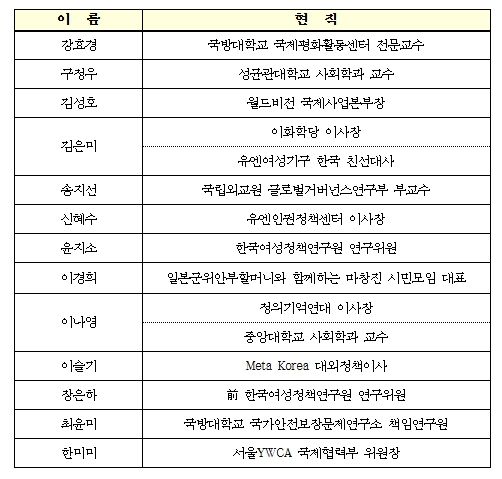 (시사미래신문) '여성과 함께하는 평화 구상(Action with Women and Peace Initiative)' 2기 자문위원회가 1월 21일 출범했다. 금번에 출범한 2기 자문위원회는 여성‧평화‧안보, 인권, 개발협력, 사이버 등 분야에서 활동 중인 13명의 학계, 시민사회 등 민간 전문가로 구성되어 앞으로 동 구상 추진 과정에서 다양한 자문을 제공하게 된다.