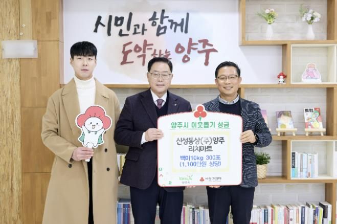 (시사미래신문) 양주시는 지난 3일 관내 신성통상㈜ 리치마트가 설 명절을 맞아 양주시에 백미 300포(약 1,100만 원 상당)를 기부했다고 밝혔다.