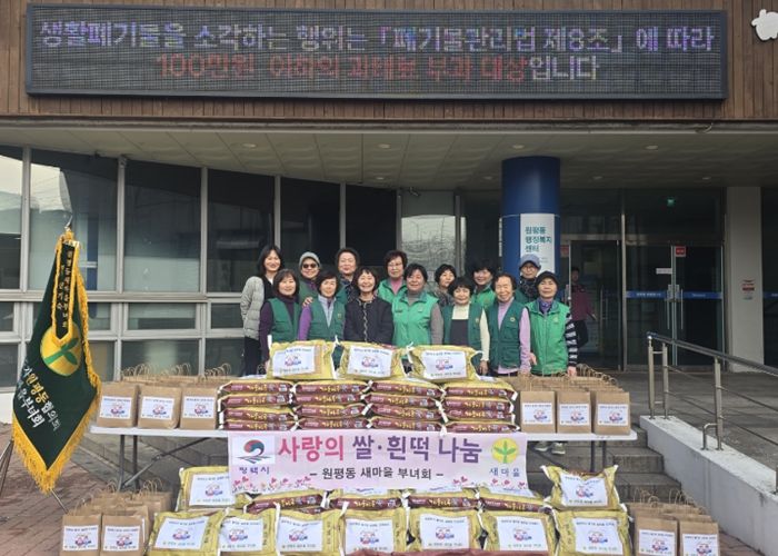 원평동 새마을부녀회에서는 관내 취약계층이 풍성하고 행복한 새해를 맞이할 수 있도록 매년 이웃들에게 쌀과 떡국떡을 전달하며 이웃사랑을 실천하고 있다.