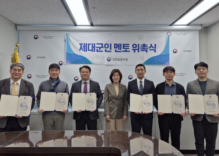 (시사미래신문) 국가보훈부 인천보훈지청 제대군인지원센터는 2월 10일 정부인천지방합동청사에서 먼저 사회에 진출하여 성공한 제대군인을 분야별로 멘토로 선정하는 “2026년 제대군인 멘토 위촉식 및 간담회”를 진행했다.