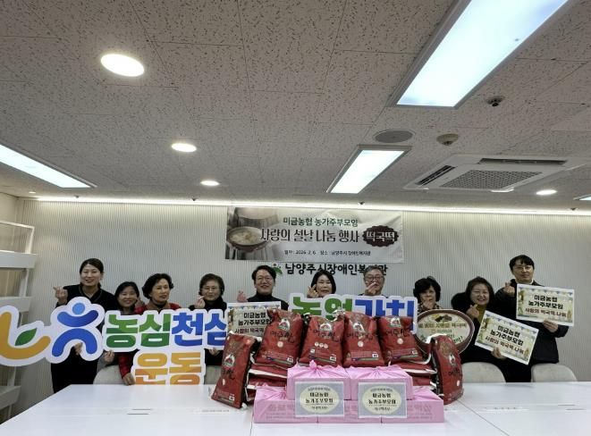 미금농협과 농가주부모임은 정성껏 준비한 떡국떡 20kg과 쌀 10kg 20포를 전달했다. 전달된 물품은 남양주시장애인복지관과 성인주간보호센터 이용인들을 위한 명절 특식으로 제공되는 한편, 지역 내 장애인 가정에도 배부돼 소외 없는 따뜻한 명절 분위기 조성에 기여했다.