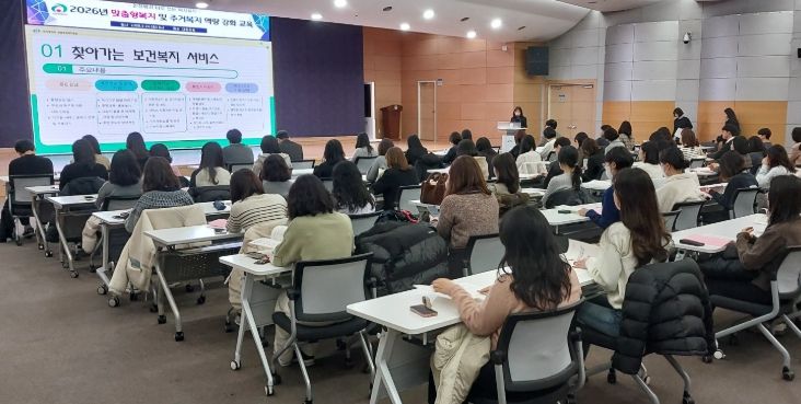 이번 교육은 읍면동 맞춤형복지 및 주거복지 담당자 100여 명을 대상으로 올해 주요 복지정책과 사업 전반에 대한 이해도를 높이기 위해 마련됐다.