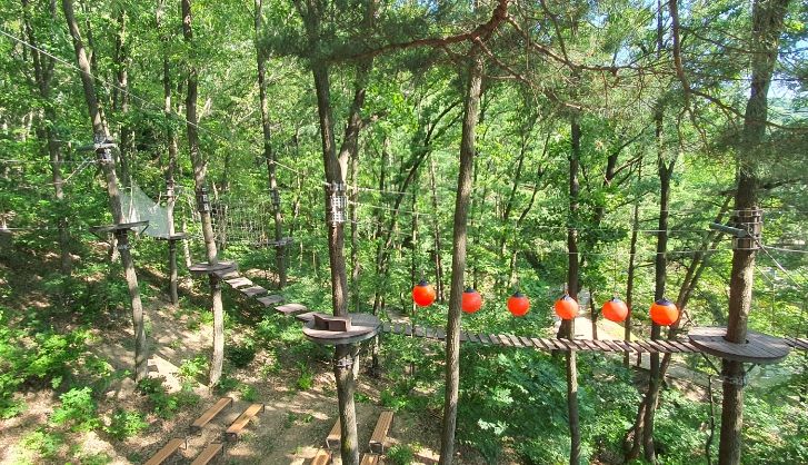 이용 요금은 짚코스터와 숲모험시설은 7,000원, 공중네트는 성인 5,000원, 어린이 3,000원이다.