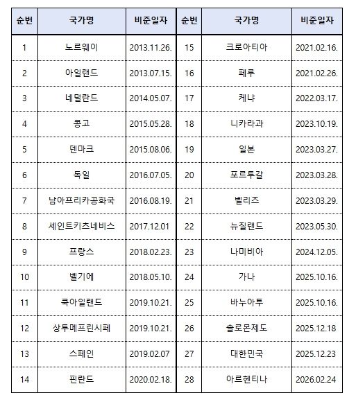 (시사미래신문) 해양수산부는 아르헨티나가 2월 24일 28번째로 ‘케이프타운 협정’에 비준서를 기탁함으로써 협정 발효 요건이 충족됐고, 내년도 2월 24일부터 동 협정이 발효될 예정이라고 밝혔다.