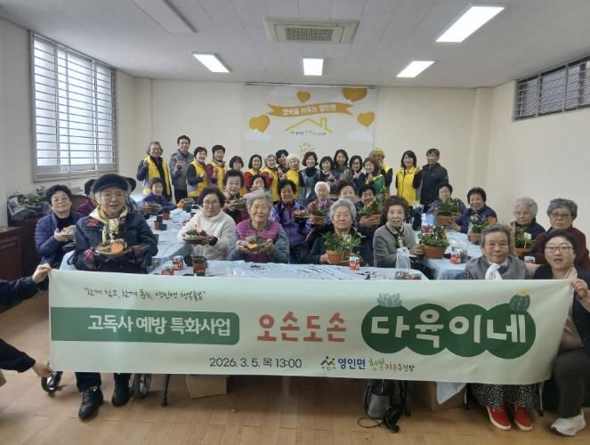 (시사미래신문) 영인면행복키움추진단은 지난 5일 고독사 예방을 위해 독거어르신 80여 명을 대상으로 '반려식물(다육이) 꾸미기 및 나눔 프로그램'을 진행했다.