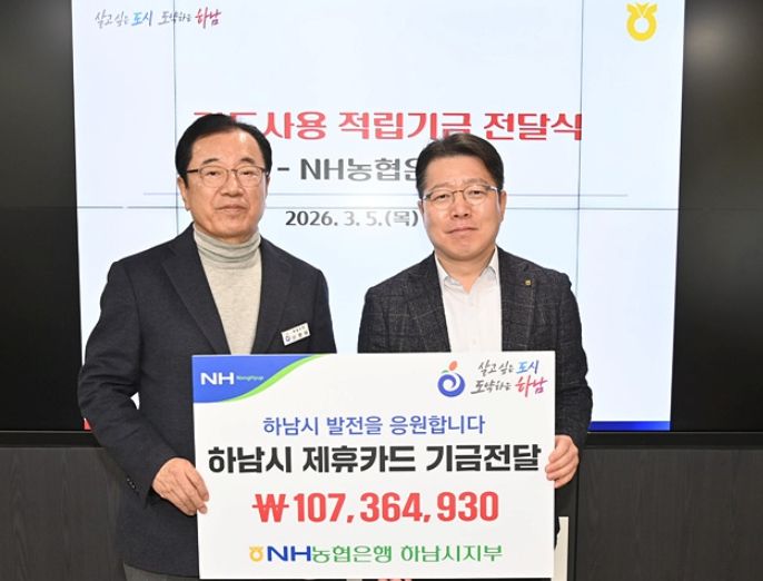 (시사미래신문) NH농협은행 하남시지부가 5일 제휴카드 사용 적립기금 107,364,930원 하남시에 전달했다고 밝혔다.