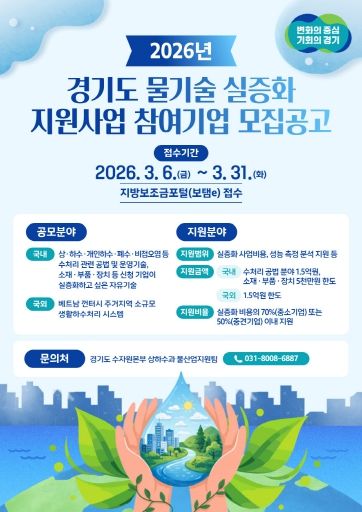 (시사미래신문) 경기도가 ‘2026년 경기도 물기술 실증화 지원사업’ 참여 기업을 공개 모집한다.