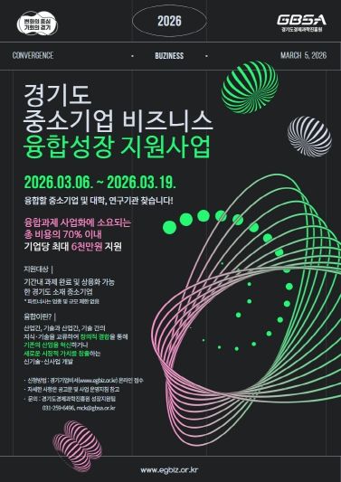 (시사미래신문) 경기도와 (재)경기도경제과학진흥원이 도내 중소기업의 혁신 성장과 새로운 비즈니스 모델 발굴을 돕는 ‘2026년 중소기업 비즈니스 융합성장 지원사업’의 참여기업을 모집한다.