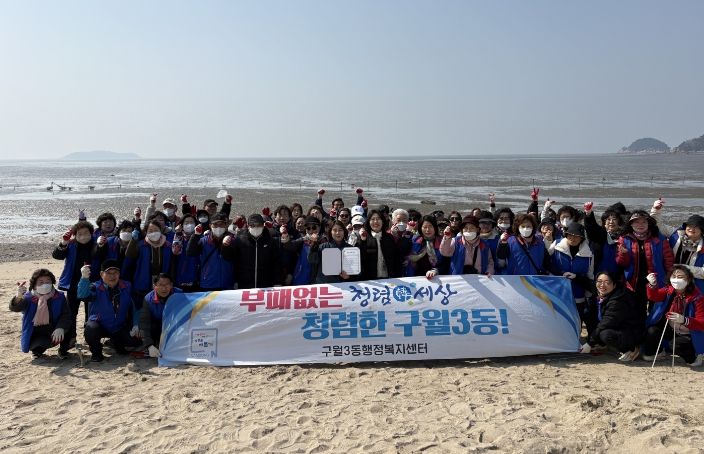 (시사미래신문) 인천시 남동구 구월3동 행정복지센터(동장 최옥주)는 최근 통장들과 함께 영종도 앞바다 일대에서 ‘통(通)하는 청렴, 살아나는 바다’를 주제로 청렴 실천과 해양환경 정화 활동을 실시했다고 11일 밝혔다.