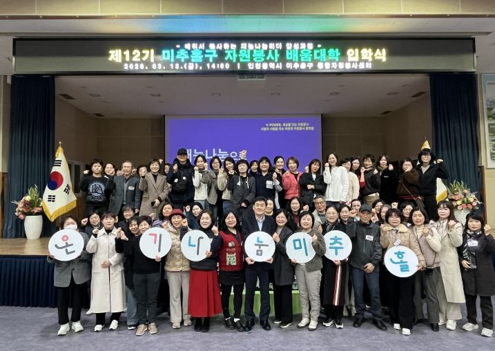 (시사미래신문) 인천 미추홀구종합자원봉사센터(센터장 유중형)는 지난 13일 미추홀구청 대회의실에서 ‘2026 미추홀구 자원봉사 배움 대학 입학식’을 진행했다.