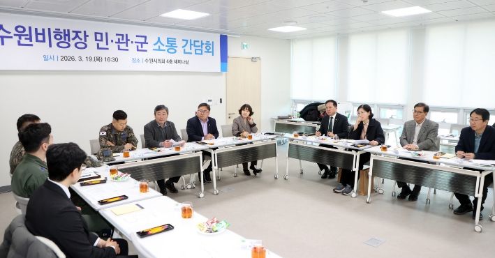 (시사미래신문) 수원특례시의회는 19일 의회 세미나실에서 공항 소음피해지역 주민들과 군, 시 관계자가 함께하는 ‘민·관·군 소통 간담회’를 개최하고 소음피해 해소를 위한 실질적인 대응 방안 마련에 나섰다.