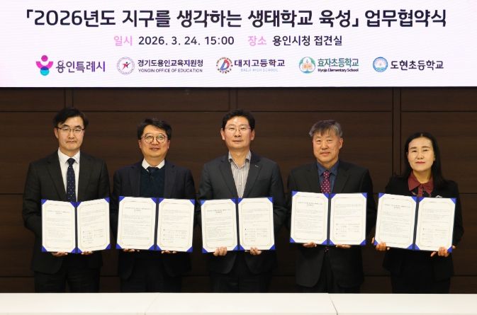 (시사미래신문) 용인특례시는 24일 시청 접견실에서 용인교육지원청을 비롯해 3개 학교와 ‘지구를 생각하는 생태학교 육성사업’을 위한 협약을 맺었다.