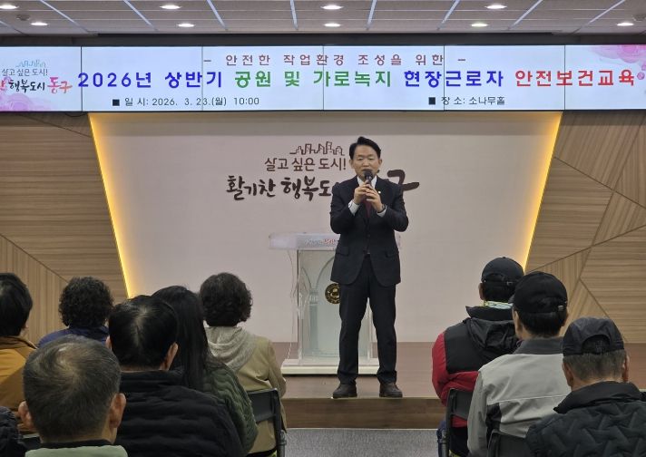 (시사미래신문) 인천 동구는 지난 23일 구청 소나무홀에서 공원 및 가로녹지 현장근로자의 안전사고 예방과 안전의식 제고를 위해 산업안전보건교육을 실시했다고 밝혔다.