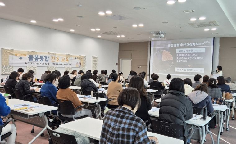이번 교육은 돌봄통합지원법 시행을 앞두고 지역사회 기반 통합돌봄 체계 구축에 필요한 간호 인력의 전문성 강화를 위해 마련됐으며, 의료기관 근무 또는 미취업 간호사 등 60여 명이 참석해 높은 관심을 보였다.