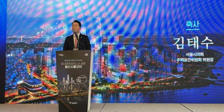 (시사미래신문) 서울특별시의회 주택공간위원회 김태수 위원장(국민의힘, 성북구 제4선거구)은 3월 27일 오후 2시, 전쟁기념관 피스앤파크(아주르홀, 4층)에서 개최된 '아시아의 비즈니스 심장, 용산서울코어 : 글로벌 기업 지역본부 유치 전략 포럼'에 참석하여 축사를 통해 용산 국제업무지구의 전략적 가치를 강조하고 서울특별시의회의 적극 지원 의지를 밝혔다.