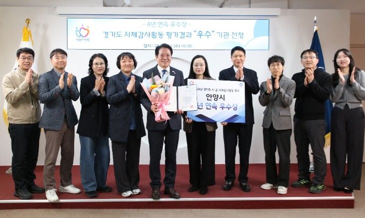 (시사미래신문) 안양시가 ‘2026년 경기도 자체감사활동 평가’에서 4년 연속 우수상을 받았다고 밝혔다.
