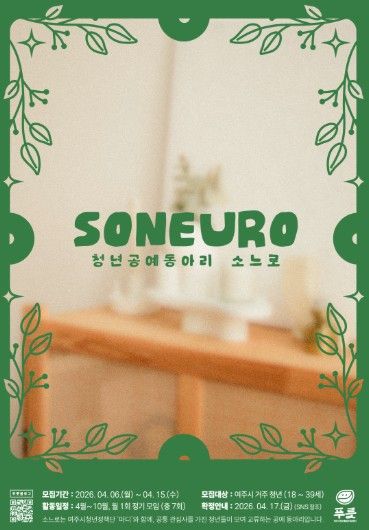 푸릇 관계자는 "소느로 동아리 활동을 통해 청년들이 만들기 체험을 넘어 손의 감각을 통해 스스로를 표현하고 서로와 연결되는 시간이 되길 바라며 창작을 매개로 새로운 관계와 경험을 쌓고 싶은 청년들의 많은 참여를 바란다"고 전했다.