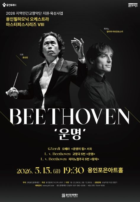 (시사미래신문) 용인문화재단은 오는 5월 15일 오후 7시 30분 용인포은아트홀에서 ‘2026년 지역민간교향악단 지원·육성사업’의 첫 공연으로 용인필하모닉오케스트라의 기획공연 '마스터피스 시리즈 Ⅷ - 베토벤 ‘운명’'을 선보인다.