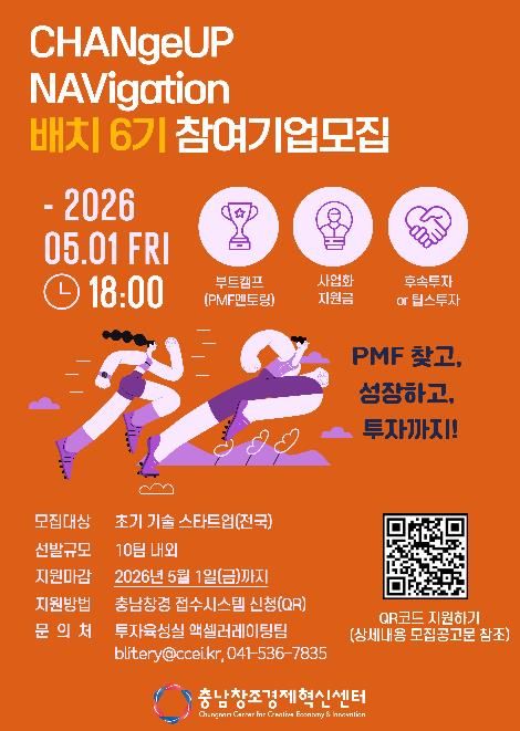 충남혁신센터 프로그램 운영 총괄 담당자는 “현장 중심의 PMF 검증과 강력한 멘토링 시스템을 통해 배치 6기 기업들이 충남을 넘어 글로벌 경쟁력을 갖춘 팀으로 성장할 수 있도록 지원을 아끼지 않겠다"고 밝혔다.