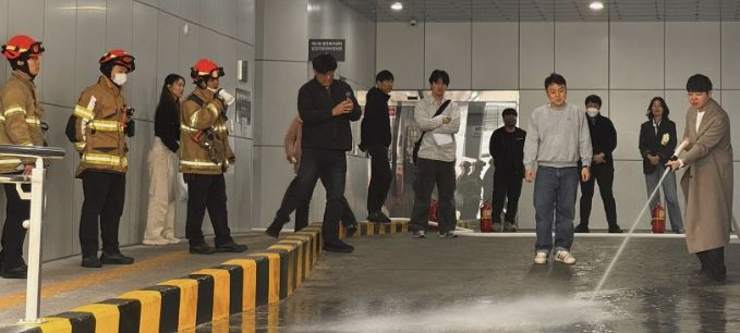 훈련은 화재 발생 시 행동 요령 교육을 시작으로 ▲연기 발생 상황을 가정한 대피 훈련 ▲교육용 소화기 사용 실습 ▲옥내 소화전 살수 실습 순으로 진행됐으며, 참가자들은 실제 화재 상황에 대비한 대응 능력을 체득했다.