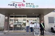 (시사미래신문) 인천 미추홀구는 지난 11일 청사 출입구(별관 등 포함)에서 ‘간부 공무원과 함께하는 청사 내 일회용 컵 반입 제한 캠페인’을 실시했다. 이번 캠페인은 지난달 22일에 이어 진행된 것으로, 구청장을 비롯한 4급 이상 간부 공무원들이 직접 참여해 청사 내 일회용 컵 반입을 제한하고, 다회용 컵 및 개인 텀블러 사용을 직원들에게 독려하는 방식으로 추진됐다. 이영훈 구청장은 “이번 캠페인은 간부 공무원들이 솔선수범해 친환경 청사 문화를 확산하자는 의미에서 모두 참여했다.”라며, “앞으로도 청사 내 일회용품 사용을 줄이고, 친환경적인 청사 운영을 더욱 강화하겠다.”라고 전했다. 구 관계자는 “일회용품 사용 줄이기 캠페인을 지속적으로 추진해, 구민들이 자발적으로 동참할 수 있도록 다양한 홍보 활동을 이어가겠다.”라고 말했다. 한편, 구는 일회용품 사용을 줄이기 위해 청사 내 다회용 컵 대여함과 텀블러 살균 세척기를 운영하고 있으며, 구 회의나 행사에서도 일회용 컵 대신 다회용 컵을 대여하는 등의 노력을 기울이고 있다.