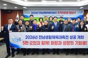 (시사미래신문) 장성군이 5일 군청 상황실에서 전라남도생활체육대축전 조직위원회 발대식을 가졌다. 위원회는 총 23명으로 구성됐다. 조직위원장은 장성군수, 부위원장은 부군수·체육회장·장애인체육회 상임부회장 3인이 맡았다. 위원으로는 유관기관장, 사회단체장, 언론인, 체육회 임원 등 19명이 임명됐다. 예정되어 있는 3종의 생활체전 성공 개최를 위해 역량을 모으게 된다. 올해 장성군에선 △제21회 전라남도어르신생활체육대축전(5월 14일~15일) △제38회 전라남도생활체육대축전(9월 12일~14일) △전라남도장애인생활체육대회(10월 15일~16일)가 열린다. 군은 지난해 전남체전·전남장애인체전 성공 개최의 경험을 살려 올해 생활체육대축전 준비에 내실을 기할 방침이다. 김한종 조직위원장은 “조직위원회와 더불어 전남생활체육대축전의 성공적인 개최를 이끌 것”이라며 “5만 군민과 함께 화합과 성장의 기회로 만들겠다”고 포부를 밝혔다.