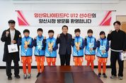 (시사미래신문) 양산시는 지난 3일 시청 3층 상황실에서 제55회 전국소년체육대회 경상남도 대표 선발전을 앞두고 훈련에 매진 중인 ‘양산유나이티드FC U12’ 선수단을 초청해 격려 간담회를 가졌다. 이날 간담회에는 양산유나이티드FC 배익두 대표이사와 조용기 감독을 비롯해 오지훈(부산 좌산초), 박라현(가촌초), 박승우(금송초), 강준서(동산초), 유현우(황산초), 김가인(금오초) 등 팀을 대표하는 12세 이하 유망주 선수 6명이 참석했다. 이번 간담회는 지역을 대표해 구슬땀을 흘리고 있는 어린 선수들의 사기를 북돋우고, 현장의 목소리를 청취하기 위해 마련됐다. 양산유나이티드FC U12팀은 현재 다가오는 전국소년체전 경남 대표 선발전을 대비해 강도 높은 훈련을 이어가고 있다. 지난 2021년 법인화와 함께 공공스포츠클럽으로 출범한 양산유나이티드FC는 짧은 역사에도 불구하고 괄목할 만한 성과를 거두며 영남권 최고의 유소년 축구 명문으로 자리 잡았다. 주요 성과로는 ▲경남 초·중 종합체육대회 6회 연속(2020~2025) 우승 ▲2년 연속(2023~2024) 전국소년체육대회 경남 대표 선발