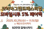 (시사미래신문) 시흥시는 오는 10월 29일부터 11월 9일까지 12일간 정부가 추진하는 ‘코리아 그랜드 페스티벌’에 참여해 시흥화폐 ‘시루’ 모바일결제 시 5%를 돌려주는 환급행사인 페이백을 진행한다. 이를 통해 시민들의 소비를 촉진하고 지역경제에 활력을 불어넣을 계획이다. ‘코리아 그랜드 페스티벌’은 ‘희망이 되는 소비, 함께 성장하는 경제’를 슬로건으로 내걸고, 가을소비 진작을 위해 범국가적으로 추진되는 대한민국 최대 규모의 할인 축제이자 국가통합 소비 활성화 프로젝트다. 행사 기간, 시흥시는 예산 소진 시까지 시흥화폐 60만 원 결제 한도 내에서 5% 페이백을 제공해 최대 3만 원까지 혜택받을 수 있도록 지원한다. 페이백 내역은 모바일 시루 앱에서 실시간으로 확인할 수 있다. 정호기 시흥시 경제국장은 “이번 페이백 행사를 통해 시흥화폐 시루의 활성화를 도모하고, 시민들이 즐겁게 지역 경제 활성화에 참여할 수 있는 계기가 되길 바란다”라고 말했다.