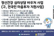 (시사미래신문) 평택시에서는 2025년 전국민 마음투자 지원사업의 효과성을 평가하고 서비스 질적 향상을 도모하기 위하여 서비스 이용 시민을 대상으로 만족도 조사를 진행했다. '전국민 마음투자 지원사업'은 우울·불안 등 정서적 어려움이 있는 시민에게 대화 기반의 심리상담 이용권(바우처) 서비스를 총 8회기 지원하는 국가 정신건강 지원사업이다. 평택시는 2025년 한해 965명의 시민이 심리상담 서비스를 이용했으며, 지난 1월 5일부터 18일까지 이용자 전원을 대상으로 익명으로 진행한 만족도 조사에서 269명의 이용자가 응답했고, 서비스 전문성과 만족도 분야 등 총 10개 문항에서 100점 만점에 평균 90.3의 높은 점수로 긍정적인 평가를 나타냈다. 특히 서비스 재이용 의사 여부를 묻는 문항에 91.8점으로 가장 높은 평가를 받았고, 타인에게 서비스 추천 여부 91.7점, 상담 결과 정신건강에 도움이 됐다는 90.6점으로 나타났다. 이용 소감으로는 “속마음을 털어놓으니 마음의 짐이 줄어든거 같다”, “불안이 사라지고, 안정감을 되찾았다”, “화를 다스리고 다른 사람들과 화합하는 방법을 깨우치게 됐다”