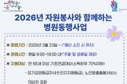 (시사미래신문) 인천 계양구자원봉사센터는 3월 23일부터 ‘2026년 자원봉사와 함께하는 병원동행사업’을 실시한다고 밝혔다. ‘병원동행사업’은 65세 이상 기초연금 수급 어르신을 대상으로 동행매니저가 병원 방문의 전 과정을 돕는 서비스이다. 해당 사업은 인천 지역 내 병·의원급 의료기관 방문 시, ▲진료 접수 ▲키오스크 수납 ▲처방약 수령 ▲안전한 귀가까지 밀착 지원하는 ‘원스톱(One-stop) 무료 서비스’로 운영된다. 서비스는 월 4회 이내(주말·공휴일 제외) 이용 가능하며, 1회 이용 시 최대 8시간까지 지원된다. 단, 휠체어 사용 등 거동이 매우 불편한 경우나 유사 복지 서비스를 이용 중인 대상자는 중복 수혜 방지를 위해 이용이 제한된다. 2022년 시범사업으로 시작된 이번 사업은 매년 800여 명의 어르신이 이용하는 등 호응을 얻고 있다. 2026년부터는 투명성 강화를 위해 서비스 이용 시 병원동행매니저에게 신분증을 제시하는 ‘본인 확인 절차’가 도입된다. 계양구자원봉사센터 홍순석 센터장은 “자원봉사와 함께하는 병원동행사업을 통해 노인 돌봄 문제를 해소하고