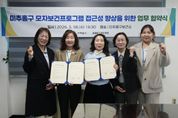 (시사미래신문) 미추홀구 숭의보건지소는 지난 19일 아인병원 마더비문화원과 ‘모자보건 프로그램 접근성 향상을 위한 업무협약’을 체결했다고 밝혔다. 이번 협약에 따라 지소는 모자보건사업, 영유아 건강관리 사업 등 공공보건 서비스 정보를 제공하고, 마더비문화원은 산모·영유아 교육 및 문화 프로그램 정보를 공유하기로 했다. 또한 시설과 인력을 공유하는 등 사업 운영을 위한 상호 협력을 강화할 계획이다. 구는 이번 협약을 통해 주민들이 모자보건 서비스를 더욱 편리하게 이용하고, 지역사회 내에서 양질의 건강서비스 제공받을 수 있을 것으로 기대하고 있다. 지소 관계자는 “이번 업무협약과 더불어 모자보건 프로그램 정보 제공 및 영유아·임산부 대상 프로그램 향상을 위해 최선을 다하겠다”라고 말했다.