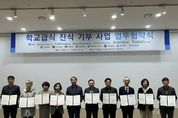 (시사미래신문) ‘수원시 학교급식 잔식 기부사업’에 참여하는 학교가 기존 8개에서 14개로 늘어난다. 수요처도 2개 기관에서 8개 기관으로 증가한다. 수원시는 19일 농수산물도매시장 관리동 대회의실에서 신규 참여기관과 업무협약을 체결하고, 적극적인 협력을 약속했다. 신규 참여기관은 다솔·당수초등학교, 권선중학교, 망포·매향여자정보·조원·천천·한봄고등학교 등 8개 학교와 서호·수원·수원YWCA·우만·청솔·효경의손길 등 6개 재가노인지원서비스센터이다. 협약에 따라 8개 학교는 학교급식 잔식 기부에 협력하고, 6개 재가노인지원서비스센터는 학교급식 잔식을 기부받아 도움이 필요한 이웃에 전달하는 역할을 한다. 학교급식 잔식 기부사업은 학교급식에서 배식하지 않고 남은 음식을 먹거리 취약계층에 지원해 돌봄 사각지대를 해소하고, 식량자원을 순환하는 사업이다. 수원시와 수원교육지원청·수원지속가능발전협의회·수원시자원봉사센터, 8개 초중고등학교, 광교종합사회복지관·우만종합사회복지관은 지난해 8월 협약을 체결하고, 9월 2일부터 12월 12일까지 학교급식 잔식 기부 시범사업을 운영한 바 있다.