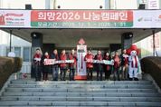 (시사미래신문) 지난 12일 여주시와 경기 사회복지공동모금회는 연말연시 나눔문화 확산을 위한'희망2026 나눔캠페인'의 시작을 알리는 사랑의 온도탑 제막식을 개최했다. 이번 캠페인의 슬로건은 “행복을 더하는 기부, 기부로 바꾸는 여주”로 이충우 여주시장, 박두형 여주시의회 의장 및 시의원, 김효진 경기 사회복지공동모금회 사무처장 등 10여명이 참석하여 제막식과 슬로건 피켓팅을 통해 홍보활동을 진행했다. '희망2026 나눔캠페인'은 2025년 12월 1일부터 2026년 1월 31일까지 62일간 여주시 지정기탁 모금액 4억원을 목표로 각 읍면동 및 본청에서 모금을 접수하며, 목표액의 1퍼센트인 4백만원의 성금이 모금될 때마다 사랑의 온도탑의 온도가 1℃씩 올라간다. 집중모금기간동안 모금된 성금 등은 사회복지공동모금회를 통해 여주시 지정기탁금 계좌로 적립되어 관내 취약계층 및 사회복지시설 등을 위한 복지사업의 재원으로 소중히 사용될 예정이며, 많은 시민들의 관심과 참여를 촉구하는 뜻깊은 자리였다.
