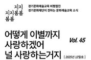(시사미래신문) 경기도와 경기문화재단이 12월을 맞아 올해를 마무리하는 문화예술교육 비평웹진 〈지지봄봄〉 45호를 발행했다. ‘어떻게 이별까지 사랑하겠어, 널 사랑하는 거지’를 제목으로 한 이번 호는 현장의 지속가능성, 행정 구조의 과제, 비평의 역할 등 문화예술교육이 직면한 주요 쟁점을 깊이 있게 다룬다. 먼저, 기획자 유모라의 글 '예술인으로 존재하고 연대하기 위하여 - 홍우주 예술학교 A.L.T.O. 탄생기'는 11년 차 홍우주사회적협동조합이 ‘홍대앞 정신’을 잇기 위해 시작한 ‘예술학교 A.L.T.O.’의 배경과 의미를 조명한다. 파일럿 프로그램을 통해 확인한 연대의 가능성과 함께, 홍우주가 그리는 지속 가능한 지역 문화예술 생태계를 탐색한다. ‘게릴라노동자들’의 대담 '문화재단 실무자 탈출기 - 『나라를 위해서 일한다는 거짓말』 함께 읽기'에서는 전 문화재단 실무자들이 공직사회의 조직 문화와 업무 환경을 돌아본다. 노한동의 책을 매개로 공공 조직의 현실을 비판적으로 되짚고, 여전히 현장에서 고군분투하는 실무자들에게 연대와 응원의 메시지를 전한다. 광주광역시 청소년삶디자인센터 김소연 기획실장 인터뷰 '이
