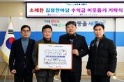 (시사미래신문) 연천군 군남면 왕림리 소재 양주축산은 지난 29일 새해를 맞아 본인이 거주하고 있는 군남면 취약계층 지원을 위해 군남면 행정복지센터 맞춤형복지팀에 후원금 500만원을 전달했다. 양주축산 대표 이장원은 수년째 관내 취약계층을 위해 새해맞이 후원금을 정기적으로 기탁하고 있으며, 지역사회에 선한 영향력을 통한 기부 문화 활성화에 크게 기여하고 있다. 이 대표는 “기부 사실을 남에게 알리고 싶지 않으며, 그저 어려운 이웃을 위해 잘 쓰였으면 한다”고 말했다. 김복성 군남면장은 “새해를 맞아 어려운 시기에 남에게 알리지 않고 매년 지역사회를 위해 따뜻한 마음을 전달해 감사드린다”며 “이러한 이웃사랑 실천이 계속돼 훈훈한 사회분위기가 조성되기를 기대한다”고 전했다. 한편 군남면 맞춤형복지팀은 기부받은 후원금을 경기북부공동모금회를 통해 주변의 어려운 이웃을 위한 다양한 사업에 사용할 예정이다.