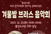 (시사미래신문) 김포시 통진도서관은 오는 12월 23일 저녁 7시부터 8시까지 다가오는 연말을 기념하여 온 가족이 함께 즐길 수 있는 브라스 음악공연을 운영한다. 이번 공연은 경기아트센터에서 지원하는 ‘찾아가는 문화복지공연’ 사업으로, 김포시 북부권 시민들을 대상으로 일상 가까이에서 문화예술을 만나는 기회를 제공하고, 지역 간 문화 격차를 완화하고자 기획했다. 이번 공연은 금관 5중주로 구성된 앙상블 코리안아츠의 풍성한 선율로 채워질 예정이며, 코리안아츠는 대한민국 국제관악제 홍보대사와 2018년 평창동계올림픽 개막식 《승리의 팡파레》를 연주하는 등 화려한 이력을 지닌 팀으로, 클래식은 물론 영화와 대중음악 등 다양한 장르를 넘나들며 새로운 음악적 시도를 이어가고 있다. 도서관 관계자는 “이번 공연은 영화 및 애니메이션 음악공연으로 누구나 쉽게 즐길 수 있으며, 이번 공연을 통해 온 가족이 따듯한 연말을 보내길 바란다”라고 말했다.