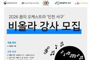(시사미래신문) 인천서구문화재단은 2026년 ‘꿈의 오케스트라 인천 서구’에 함께 할 아동 단원 및 신규 비올라 파트의 음악 강사를 추가 모집한다. ‘꿈의 오케스트라 인천 서구’는 문화체육관광부 산하 한국문화예술교육진흥원이 주관하는 꿈의 오케스트라 사업의 일환으로, 인천 서구 아동·청소년이 음악 교육을 통해 삶의 가치를 발견하고 건강한 문화시민으로 성장할 수 있도록 지원하는 사회통합형 문화예술교육 프로그램이다. 2026년에는 오케스트라의 음악적 완성도를 높이기 위해 기존 8개 파트에 비올라 파트를 새롭게 신설한다. 보다 균형 잡힌 앙상블 구성을 바탕으로 단계별 심화된 오케스트라 교육을 운영할 계획이다. 아동 단원 모집인원은 총 16명으로 ▲바이올린 2명 ▲비올라 6명 ▲플루트 2명 ▲클라리넷 1명 ▲트럼펫 3명 ▲타악기 2명이다. 인천 서구에 거주하거나 서구 소재 학교에 재학 중인 10~13세(초등학교 3~6학년) 아동·청소년을 대상으로 하며, 교육 일정, 특별활동 및 정기 공연 등에 성실히 참여할 수 있다면 누구나 지원할 수 있다. 선발된 단원은 2026년 3월부터 12월까지 서구 드림 아카데미에서 오케스트라