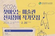 (시사미래신문) 인천광역시교육청은 지역과 연계한 학교예술교육의 일환으로‘찾아오는 미술관’전시 참여 작가를 모집한다. ‘찾아오는 미술관’은 학교 유휴공간을 활용해 미술 작품을 전시함으로써 학생들이 일상 속에서 예술을 자연스럽게 경험하도록 돕는 학교예술교육 사업이다. 이번 모집은 인천 지역 전문 미술작가를 대상으로 하며, 접수 기간은 2월 9일부터 2월 20일 오후 4시까지이다. 자세한 사항은 인천시교육청 누리집이나 블로그에서 확인할 수 있다. 시교육청 관계자는“찾아오는 미술관은 2023년 시작 후 매년 높은 만족도를 보여 온 사업으로, 일상에서 예술을 접하는 경험은 학생들의 감수성과 사고의 폭을 넓히는 큰 힘이 될 것”이라며 “올해도 많은 지역 작가분들이 함께해 주시길 기대한다”고 말했다.